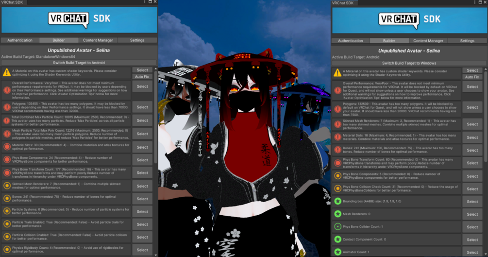 - Make a new project using VRC Creator Companion, Import poi_Toon_7.3.50_UpTo_9.0.61, Import the Avatar Unity package.