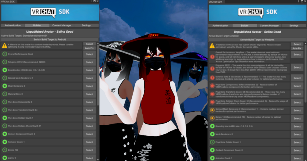 - Make a new project using VRC Creator Companion, Import poi_Toon_7.3.50_UpTo_9.0.61, Import the Avatar Unity package.